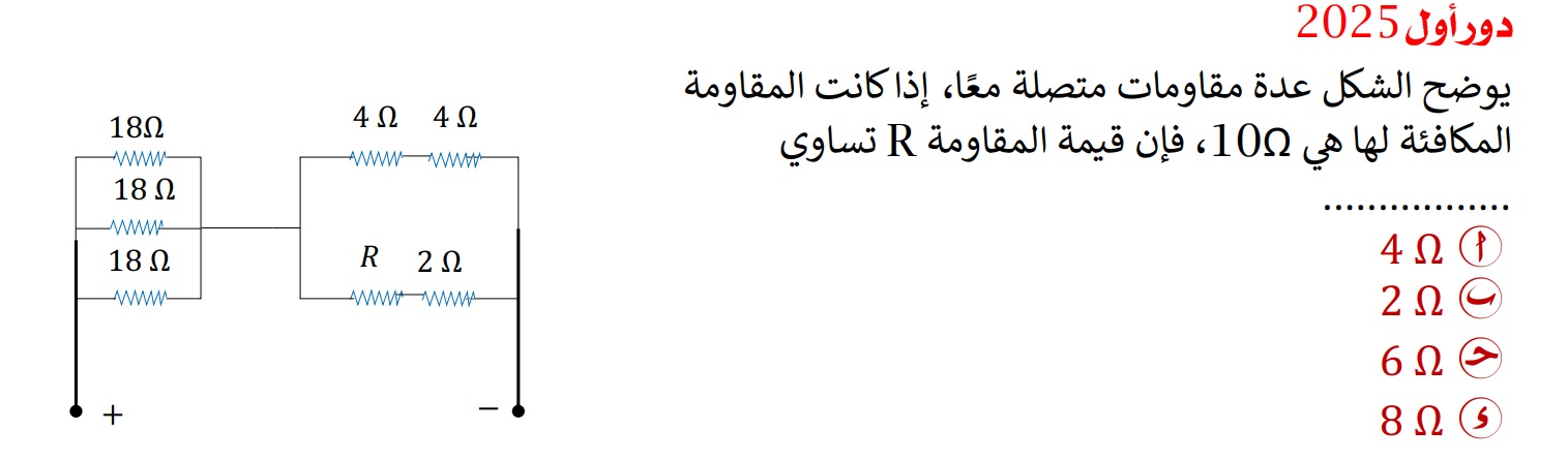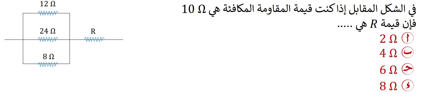 نتيجة الإختبار - الفصل الاول امتحان قبل كل حصة- مني تيست على المقاومة المكافئة وقبل قراءة الاميتر